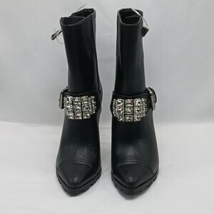 Women's Size 6.5M Black Leather Crystal Embellished Whimsygoth Ankle Boots.