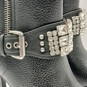 Karl Lagerfeld Mable Boot Women 6.5 Black Leather Crystal Embellished Whimsygoth