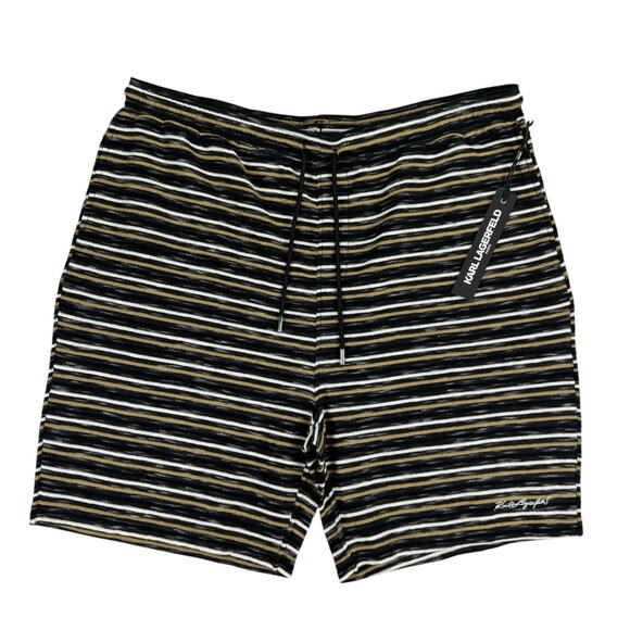 Karl Lagerfeld Mens Slim Fit Textured Stripe Drawstring Shorts Black Tan 2XL