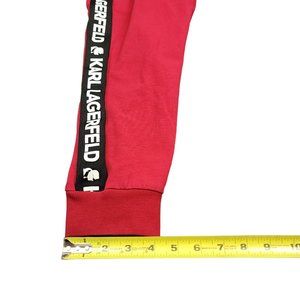 Karl Lagerfeld Mens XS Joggers Red Drawstring Pockets Logo Side Stripe Pants