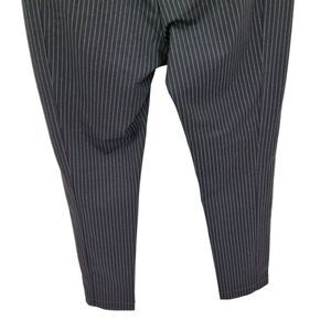 Karl Lagerfeld Mid Rise Stretch Pants 16 XL Black Gray Pinstripe Faux Zippers