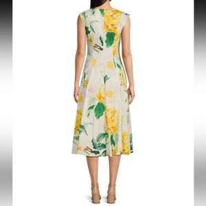 Karl Lagerfeld NWT Cap Sleeve Yellow Floral V Neck Midi A-Line Dress Size 12 New