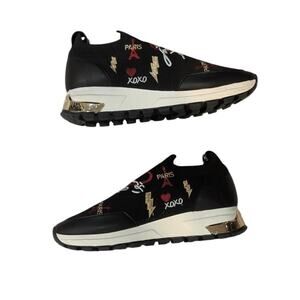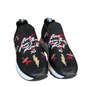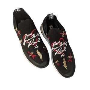 Karl Lagerfeld PARIS Miranda Sneakers Black Logo Slip-On Size 7