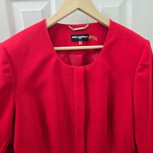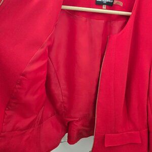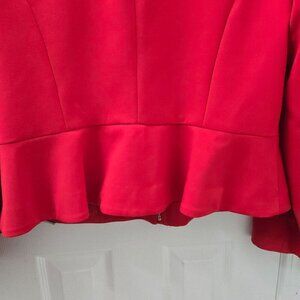 Karl Lagerfeld Paris 16 Red Full zip Blazer with Peplum Faux Front Pockets