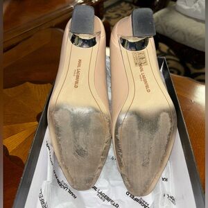 Karl Lagerfeld Paris Agatha Tan Leather Round Toe Block Heels Pumps Size 7.5