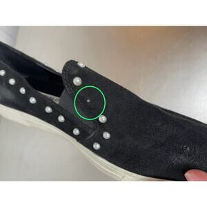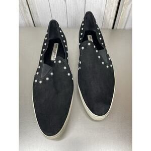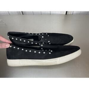 Karl Lagerfeld Paris Amory Suede Leather Black Pearl Slip On Shoes Size 10