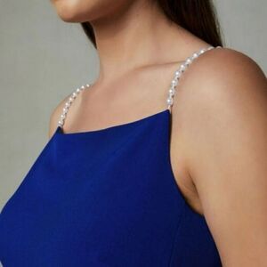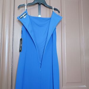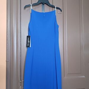 Brand new with tag. Please scroll picture for more details before purchase. Karl Lagerfeld Paris BLUE Women's Dress size 0 Column Gown with Pearly Straps. Pet and smoke free home.