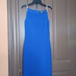 Karl Lagerfeld Paris BLUE Women's Dress size 0 Column Gown with Pearly Straps
