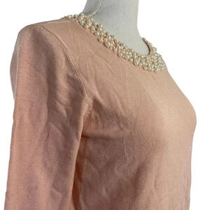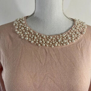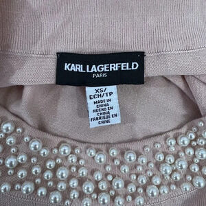 Karl Lagerfeld Paris Baby Pink Sweater Faux Pearl Beaded Embellished Neckline XS