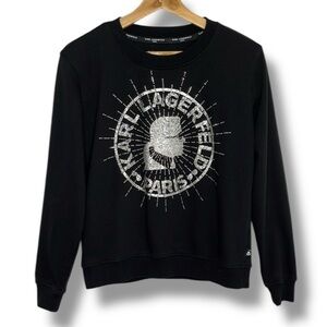 Karl Lagerfeld Paris Black Crewneck Sweatshirt Silver Face Logo Women's Small