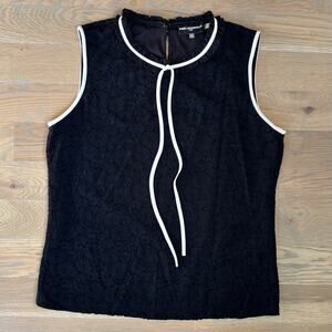 Karl Lagerfeld Paris Black Lace Tank Top Blouse Lined Neck Tie Womens Large