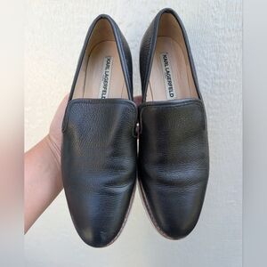 Karl Lagerfeld Paris Black Leather Loafers Flat Shoes Women's Size 8