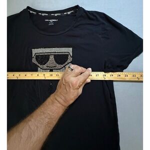 Keywords: Karl Lagerfeld, Paris, Black T-Shirt, Rhinestone, Logo, Graphic Tee, Designer T-Shirt, Womens T-Shirt, XL, Extra Large, Casual Top, Statement T-Shirt