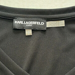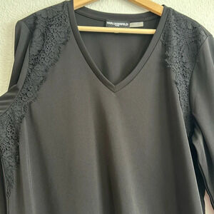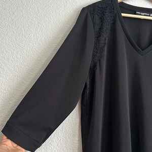 Karl Lagerfeld Paris Black V Neck Floral Lace 3/4 Sleeve Womens Top Size Large