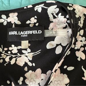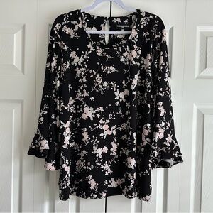 Karl Lagerfeld Paris Black and Pink Blossom Bell Sleeve Top Plus Size 2X. Excellent condition, Smokefree home. Please see photos for approx. measurements.