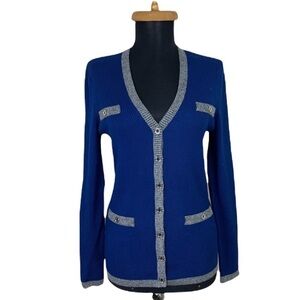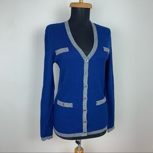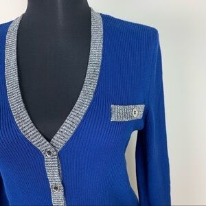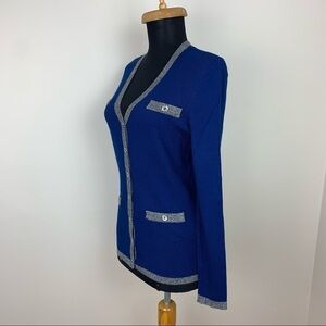 Karl Lagerfeld Paris Blue Cardigan with Silver Trim C3