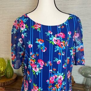 Karl Lagerfeld Paris Blue Floral Short Sleeve Striped Sheath Dress Women Size 10