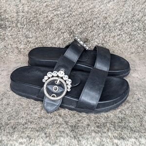 Karl Lagerfeld Paris Brinda Embellished Slide Sandal Black Women's 9