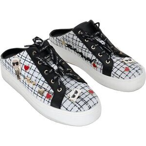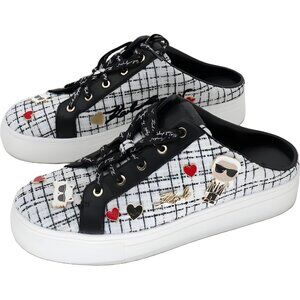 Karl Lagerfeld Paris Cambria slide sneakers black/white hearts charms 9M