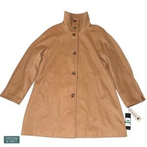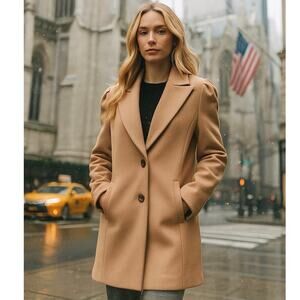 Karl Lagerfeld Paris Camel Wool Blend Puff Sleeve Long Topper Coat Jacket NEW
