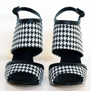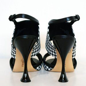 Karl Lagerfeld Paris Camryn Leather Sandal in Black/White Fabric