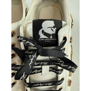 Pre-owned Karl Lagerfeld Cate Pins Lace Up Sneaker. Size 8.5. Some wear present from use. Please see pics for greater detail.