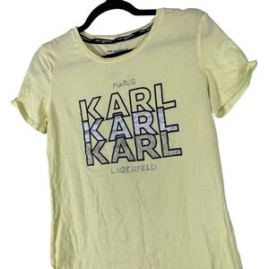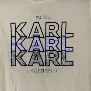 Karl Lagerfeld Paris Colorblock Logo Knit Sweater Black White XS