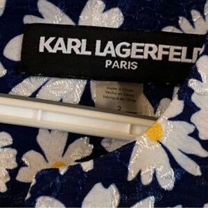 Karl Lagerfeld Paris Dress Blue Yellow Floral Lined Bottom Ruffles Sz 2 see pics