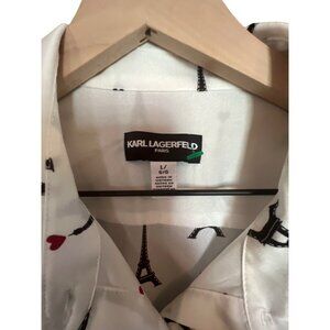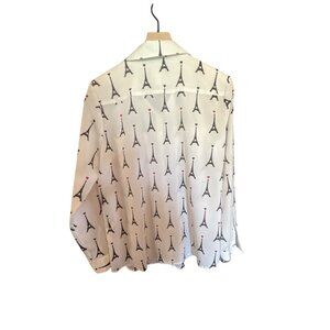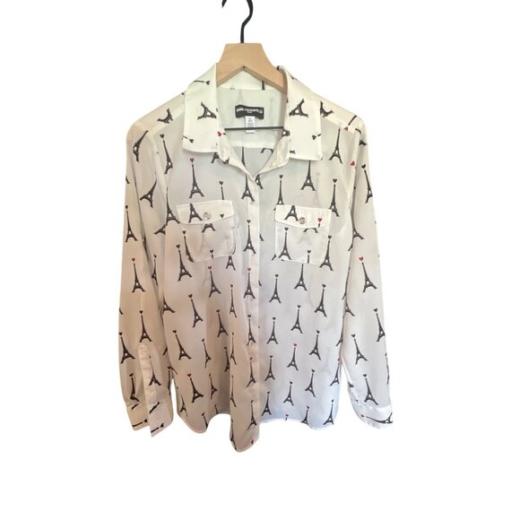 Karl Lagerfeld Paris Eiffel Tower Print Long Sleeve Button-Up Blouse L