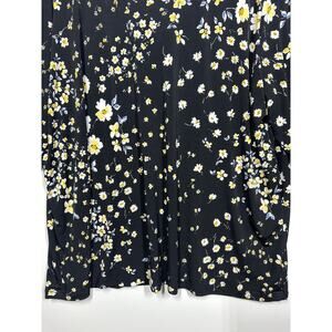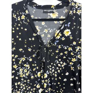 Karl Lagerfeld Paris Floral 3/4 Sleeve Blouse Cut Out Tie Neck Black Yellow 2X