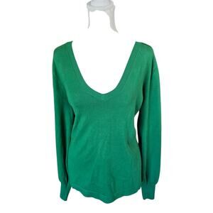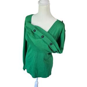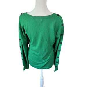 Karl Lagerfeld Paris Green Sweater Women’s L Button Sleeve V-Neck Pullover Top
