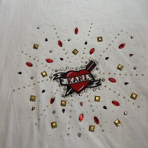 Karl Lagerfeld Paris Heart Patch Embellished Logo Tee. This is in good used condition