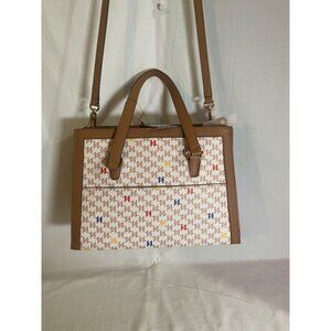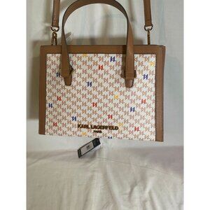 Karl Lagerfeld Paris Honey Brown Multi-colored Logo Satchel w Detachable Strap NWT.