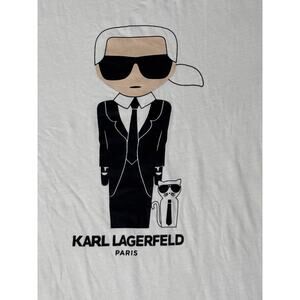 Karl Lagerfeld Paris Iconic Doll Graphic Logo Cat Choupette Shirt Womens Sz M