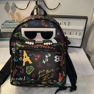 Karl Lagerfeld Paris Maybelle Collection Graffiti In Paris Backpack Black NWT