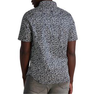 Karl Lagerfeld Paris Men's Geometric Box Pattern Snap Front SS Shirt Black/White