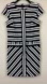 Striking black and white multi direction striped dress, cap sleeves, round neckline, hidden back zipper, soft stretchy fabric, drop waist with accent tabs at waistline with faux pearl treatment buttons. Fabric feels soft but very substantial.