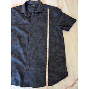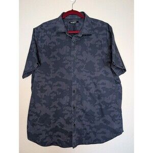 Karl Lagerfeld Paris Navy Blue Camouflage Short Sleeve Button Up Men's Size XL