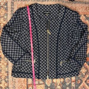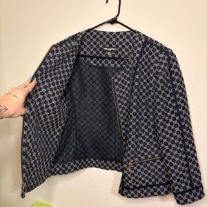 Karl Lagerfeld Paris Navy Blue Women's Zip Blazer Jacket