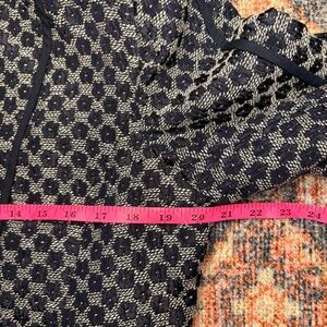 Discover the sophisticated charm of the Karl Lagerfeld Blue Geometric Blazer, featuring a striking diamond pattern in navy blue and white. This blazer boasts a round neckline and a full-length front zipper, offering a modern twist on classic tailoring. Crafted from a textured woven fabric, it provides a stylish and comfortable fit, perfect for both formal and casual occasions.