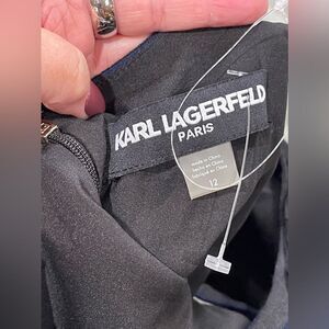Karl Lagerfeld Paris Navy Ruffle Hem Dress with Bow Detail - Size 12 - NWT