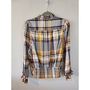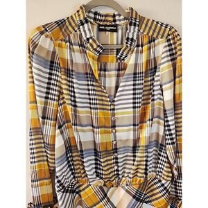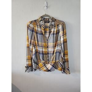 Karl Lagerfeld Paris Plaid Chambray Button-Down Blouse Size M