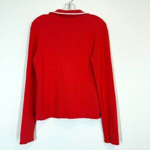 Karl Lagerfeld Paris Red Cardigan Sweater Jacket Gold Buttons Pockets Preppy M