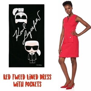 Karl Lagerfeld Paris Red Tweed Dress With Pockets