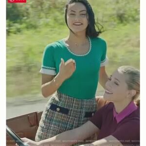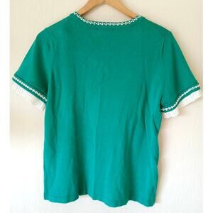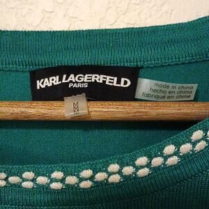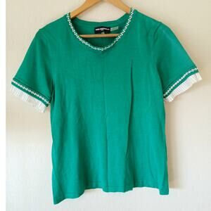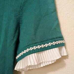 Karl Lagerfeld Paris Ruffle & Embroidery-Trim Short-Sleeve Sweater in green AS SEEN ON RIVERDALE!