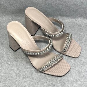 Karl Lagerfeld Paris Sandal Women’s 11 M Rayan Embellished Block Heel Dune Pink