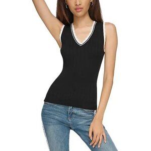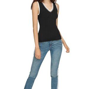 Karl Lagerfeld Paris Scalloped Trim Ribbed Tank - Black, Size Small, NWT