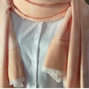 Karl Lagerfeld Paris Shawl Peach Pink CAMELIA ROSES Large Scarf Coverup Wrap