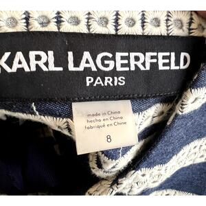 Karl Lagerfeld Paris Shift Dress Size 8 Nautical Navy Stripe Eyelet Embroidered