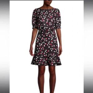 Karl Lagerfeld Paris Short Sleeve Jacquard Dot Flounce Dress - Size 0. Great condition